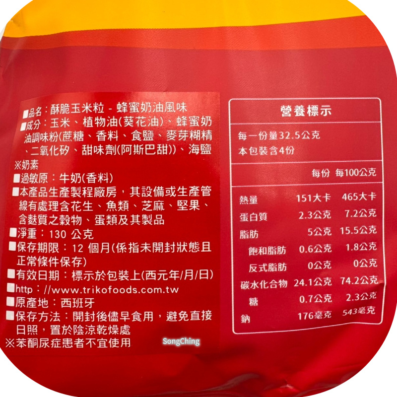 品名:酥脆玉米粒 蜂蜜奶油風味